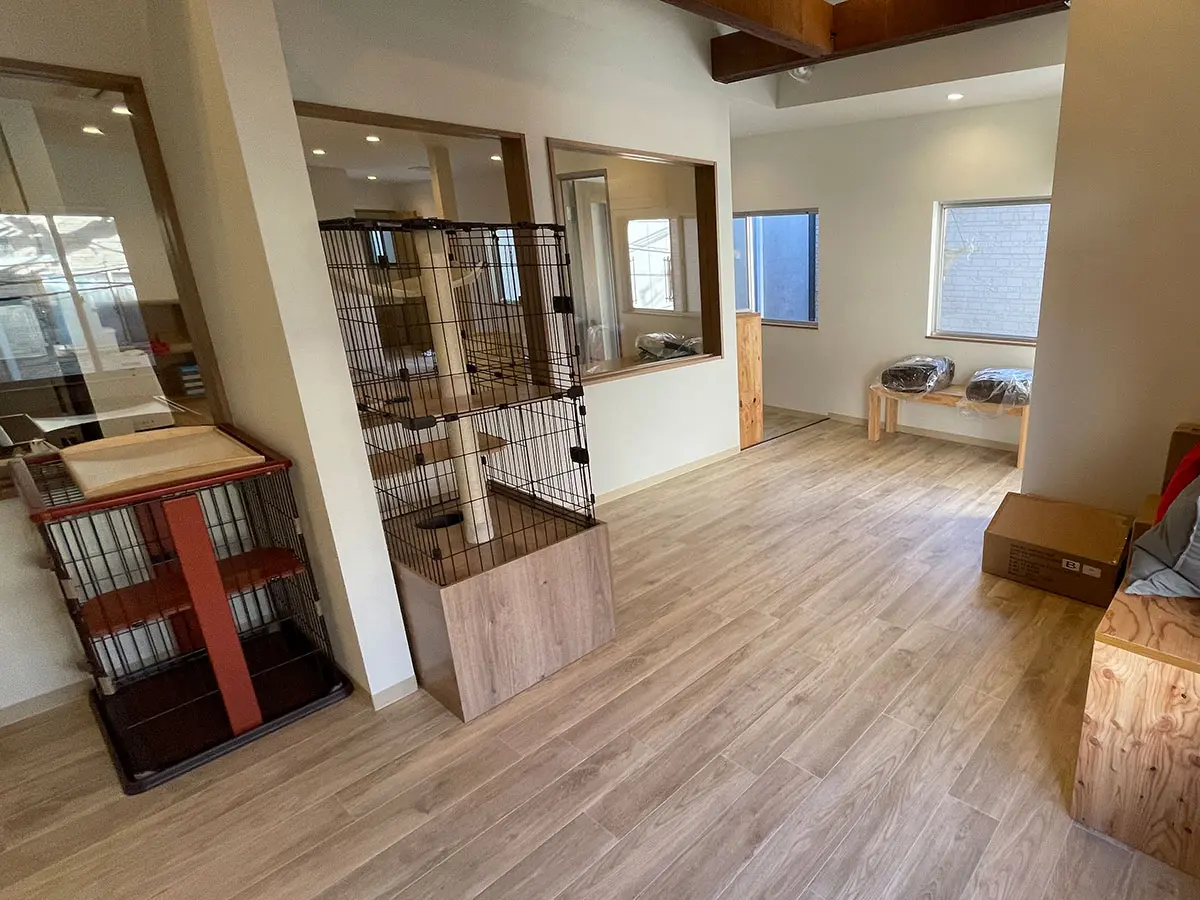 猫カフェスペースとシャワールーム完備のフィットネスジムに改装