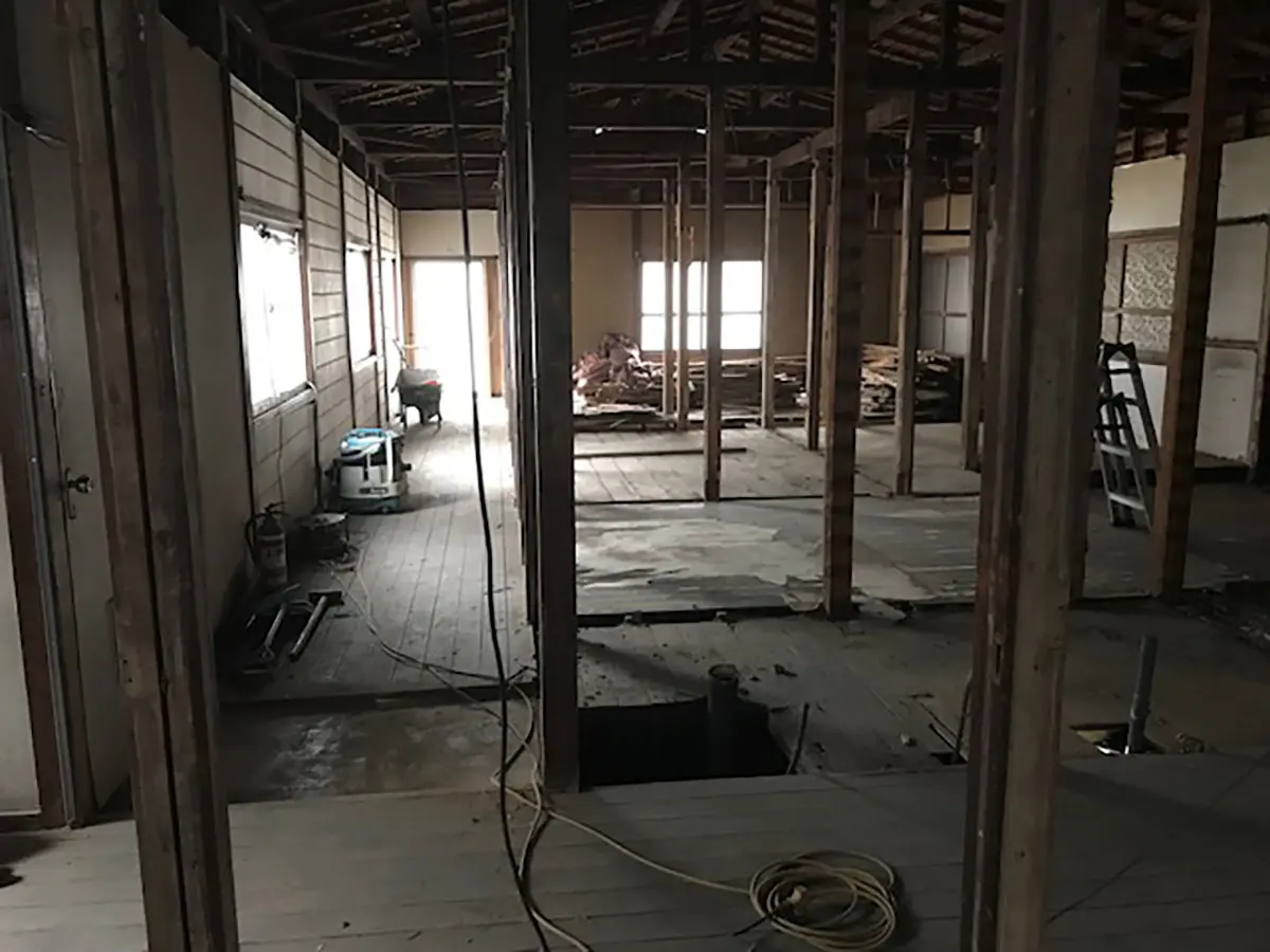 1Fは建築倉庫2Fは住居だった木造部分を改装。構造躯体の補強や内装デザインにこだわり猫カフェスペースとシャワールーム完備のフィットネスジムに改装。猫用の階段や遊びスペースなども設けてこだわりのコーヒーを頂きながら有意義な時間を過ごせる空間です。